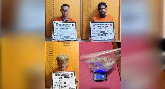 Keritang | Kepolisian Sektor (Polsek) Keritang berhasil mengungkap kasus peredaran narkotika di wilayah hukumnya dengan menyita barang bukti berupa 96,7 gram sabu-sabu dan 35 butir pil ekstasi. Tiga orang pelaku diamankan dalam operasi yang berlangsung pada Kamis dini hari (7/8 /2025) di Desa Pancur Jaya, Kecamatan Keritang, Kabupaten Indragiri Hilir, Riau. 7 Agustus 2025